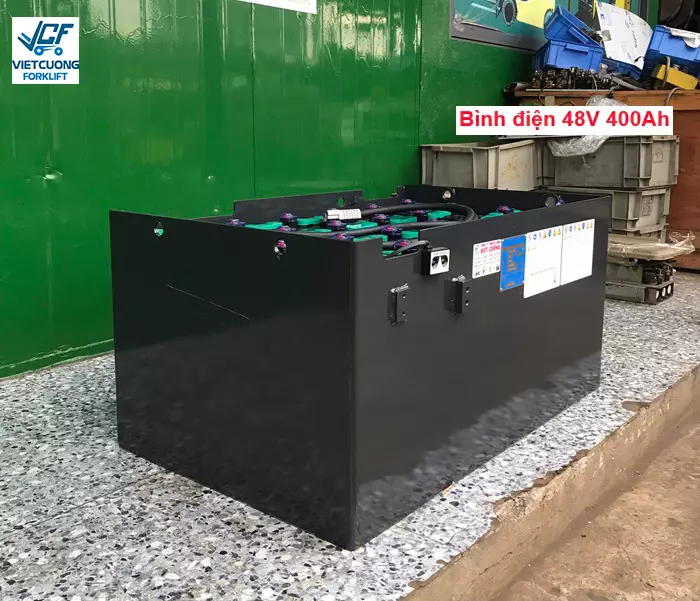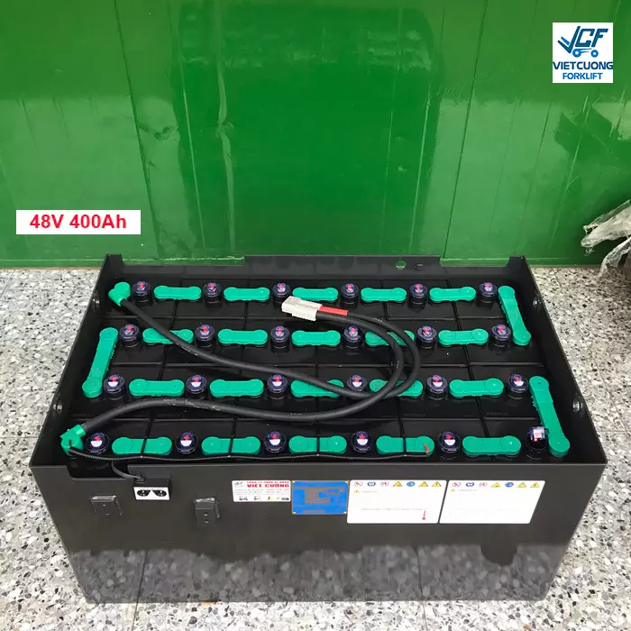 Với công suất 400Ah, bình điện có thể hoạt động trong nhiều giờ liên tục, giúp xe nâng duy trì được hiệu suất làm việc cao, đặc biệt trong các kho bãi hoặc nhà máy có nhu cầu sử dụng xe nâng nhiều.