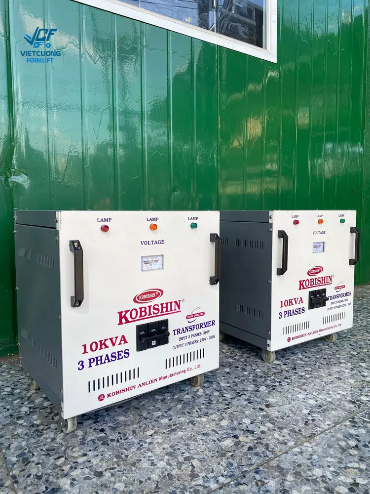 Alo xe nâng chuyên cung cấp máy biến áp 3 pha 10KVA thương hiệu Kobishin dùng cho xe nâng điện. Giao hàng và lắp đặt tận nơi cho khách hàng.