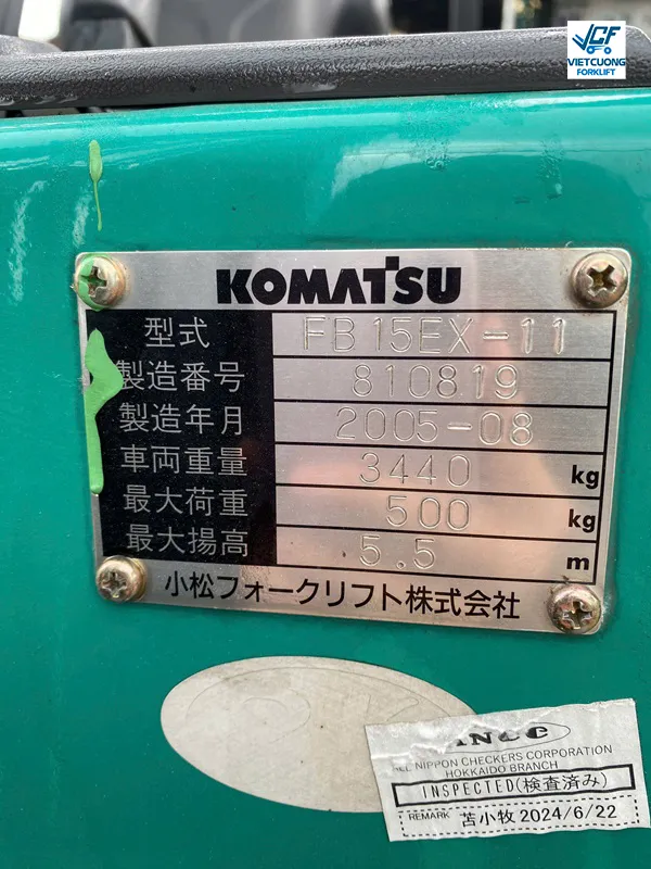 Xe nâng điện ngồi lái Komatsu FB15EX-11 tải trọng nâng 1.5 tấn, nâng cao 5.5 mét là sự lựa chọn thích hợp cho doanh nghiệp sản xuất có nhu cầu xếp dỡ hàng hóa lên cao. Thương hiệu Komatsu đến từ Nhật Bản là một trong những dòng xe được đánh giá cao về chất lượng vận hành cũng như tuổi thọ cao.